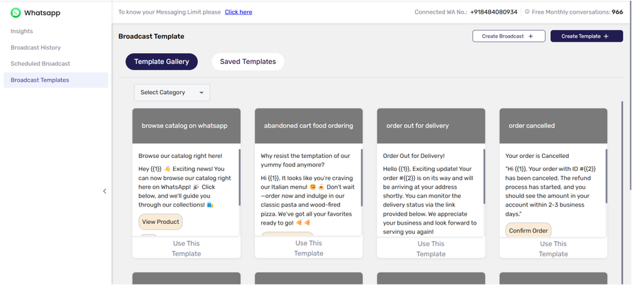- Navigate to the Broadcasting module in Geta.ai and select Broadcasting templates