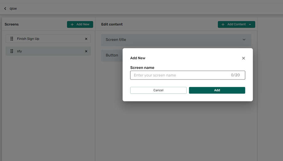 - You can now add content such as text, media, or other elements to the new screen as needed for the flow.