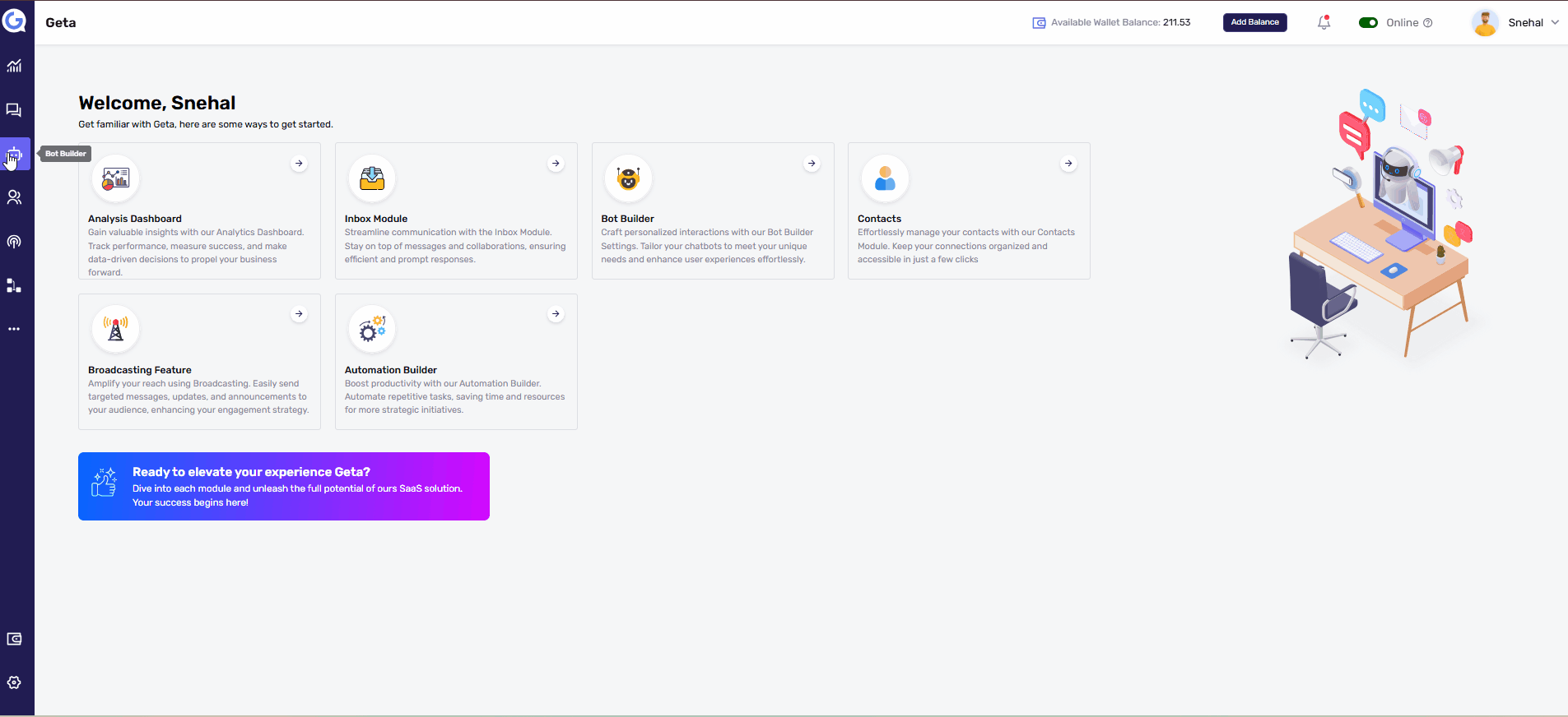 - Navigate to the Bot Builder module.