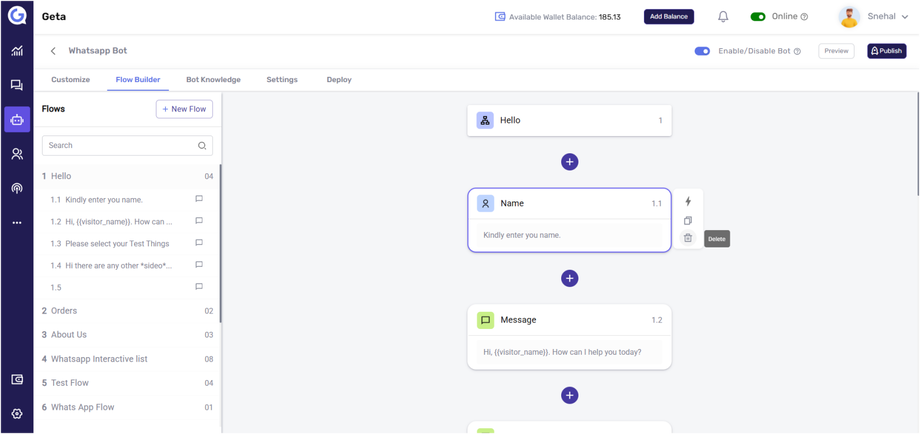 By following these steps, you can efficiently delete unnecessary nodes and optimize your chatbot flow in Geta.ai.