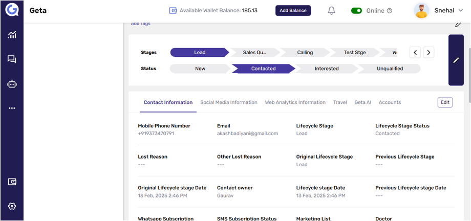 To edit or update contact details in Geta.ai's Contact Module, follow these steps: