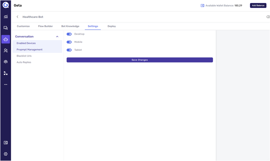 By enabling the bot on specific devices, you can provide a tailored and optimized chatbot experience on Geta.ai.