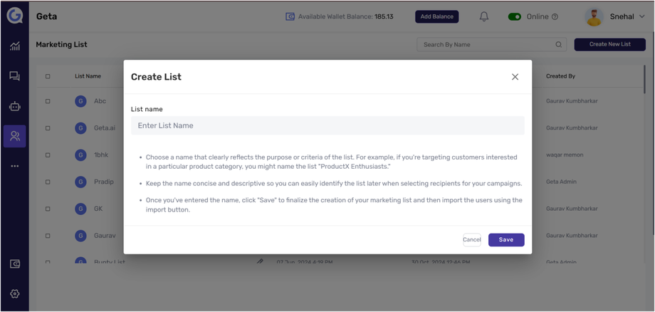 A Marketing List is a targeted group of contacts that you can use for campaigns, promotions, or communications in Geta.ai. It helps segment your audience based on specific criteria, making it easier to manage and communicate with particular groups.