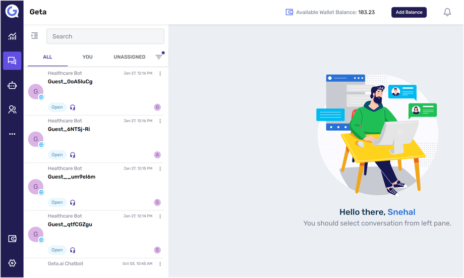 Searching for a specific conversation in the Geta.ai Inbox allows you to quickly locate chats based on keywords or customer details, making it easy to manage multiple conversations.