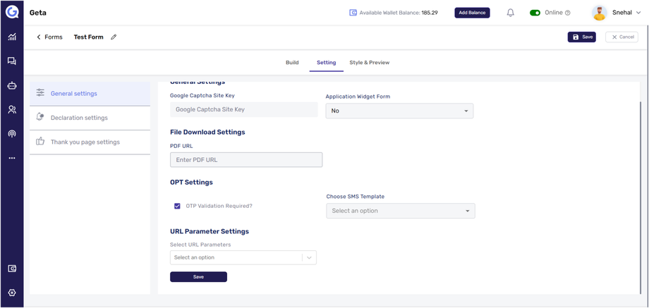 Set OTP Validation for a Phone Number in Web Forms on Geta.ai